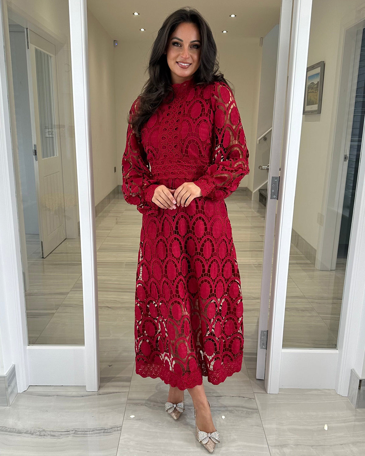 Elara Herz-Ausschnitt Midi Kleid – Pink